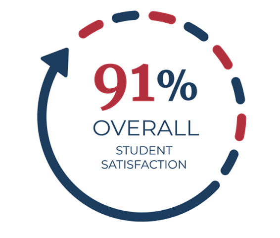 Our students rated us 91% for ‘overall satisfaction with my course’, which is significantly higher than the 77% average in our sector.